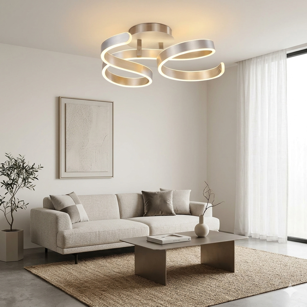 Le plafonnier Chippewa se distingue par son design moderne et aérien, composé de courbes élégantes qui créent un véritable jeu de lumière au plafond. Sa finition en nickel mat apporte une touche contemporaine et raffinée, idéale pour sublimer un intérieur moderne.
