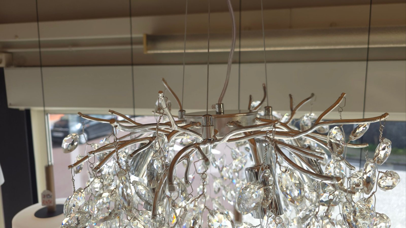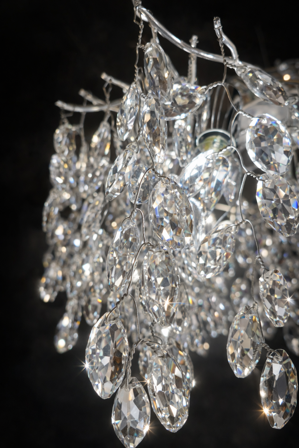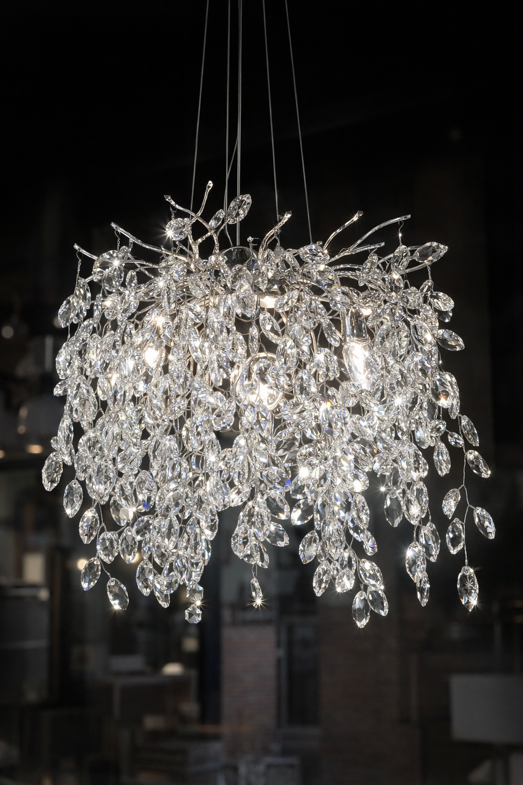 Lustre Arborescence Argentée aux Cristaux Feuilles