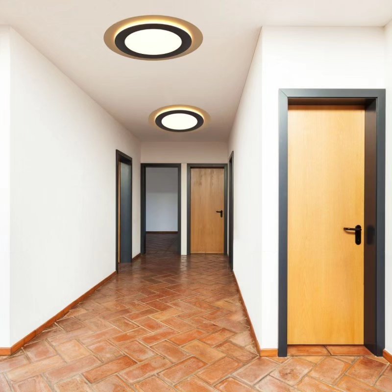 Plafonnier LED design, MORGAN, noir et or, lumière variable avec télécommande.