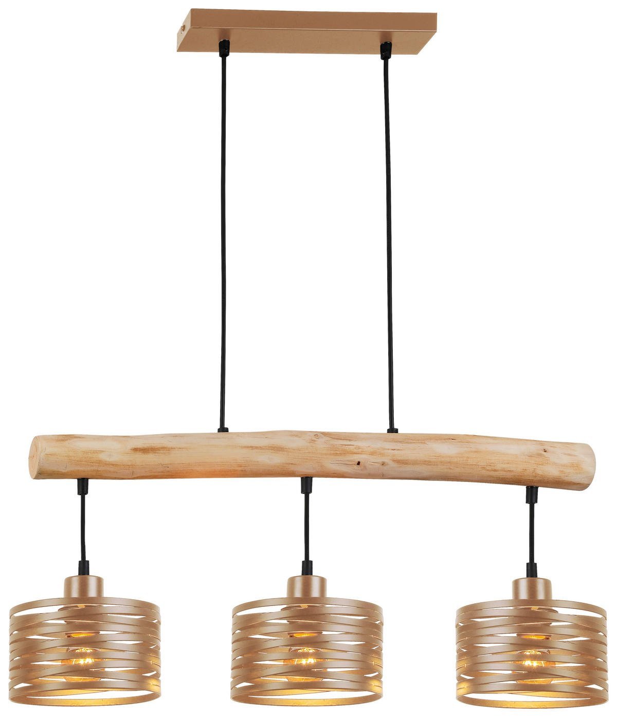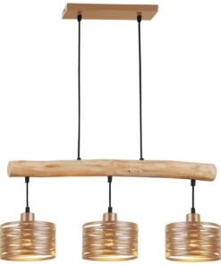 Laissez-vous séduire par l’élégance intemporelle de la suspension Capucino. Sa poutre en bois flotté, délicatement suspendue par des câbles noirs discrets, apporte une touche de chaleur et d’authenticité à votre intérieur. Ses trois abat-jour en métal, arborant une finition or poudré subtile et raffinée au design spiralé délicat, diffusent une lumière douce et chaleureuse, créant une atmosphère conviviale et apaisante.