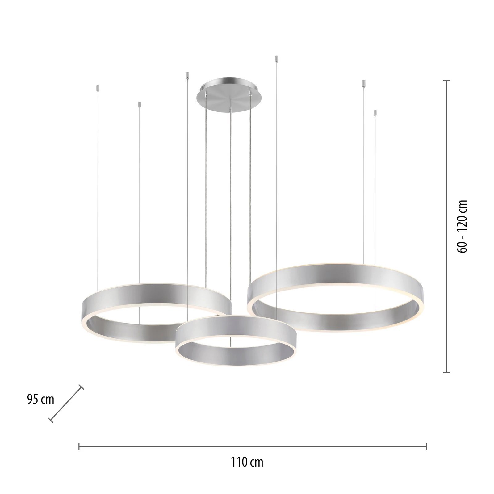 Composée de trois anneaux ajustables en hauteur, elle permet de créer une installation unique, parfaitement adaptée à votre intérieur. Sa finition en nickel mat lui confère une élégance sobre et haut de gamme, idéale pour sublimer un salon, une salle à manger ou un espace moderne.